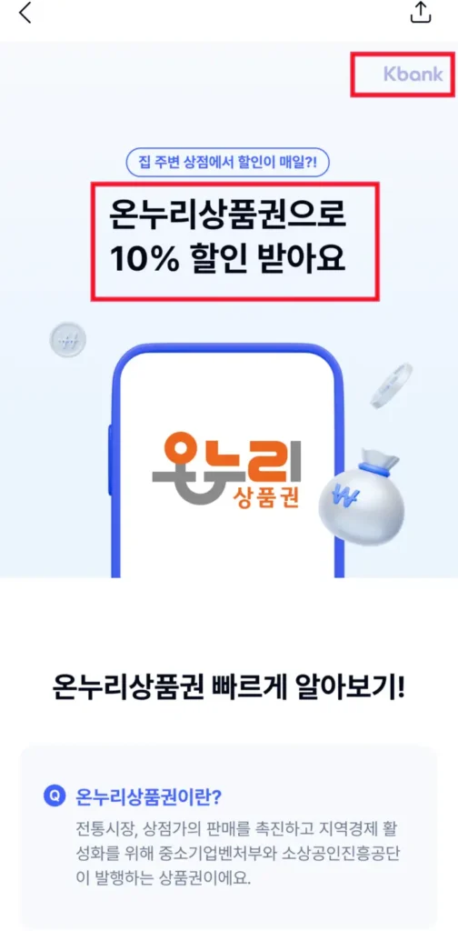 오늘은 케이뱅크 앱을 사용하다가 디지털온누리상품권 안내 중 새로운 내용을 알게 되어 그 부분을 공유한다.