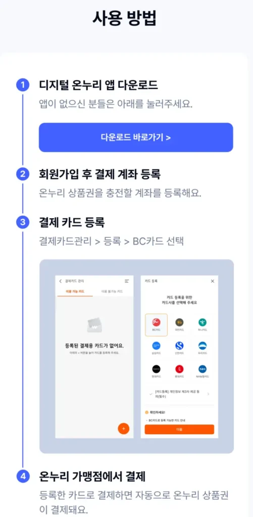 디지털 온누리 상품권 사용법: 카드결제시 주의사항