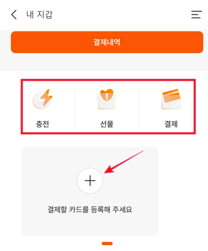 아래쪽에는결제할카드를 등록하는 메뉴가 나온다.