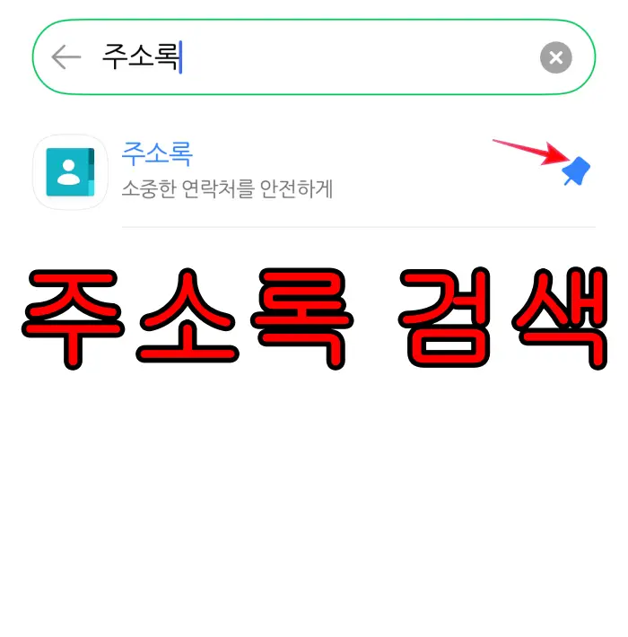 이제 검색창에 주소록을 입력하니 해당 서비스가 나타난다. 일단 찜하는 핀모양을 선택한후 주소록 을 터치한다.