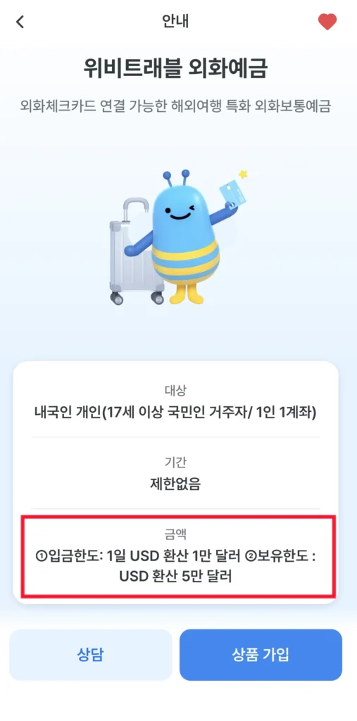 위비트래블 체크카드를 만드려면 먼저 위비트래블 외화예금 계좌를 개설해야한다.