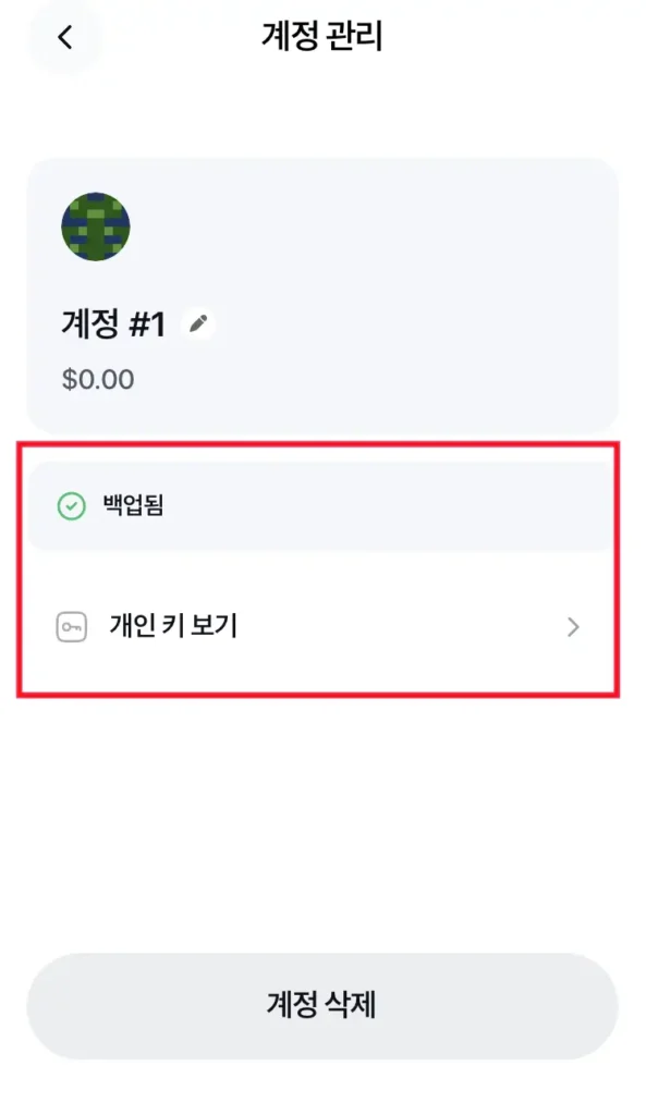 그리고 계정관리에서 개인키도 확인해두셔야 합니다.