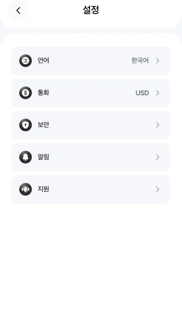 이제 지갑의 기본 기능은 설정을 했고요,설정메뉴에서 보안등을 살펴봅니다.