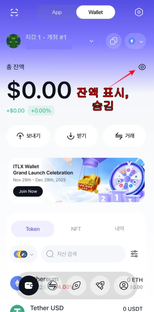 이것은 잔액을 보여주거나 숨기는 기능입니다.