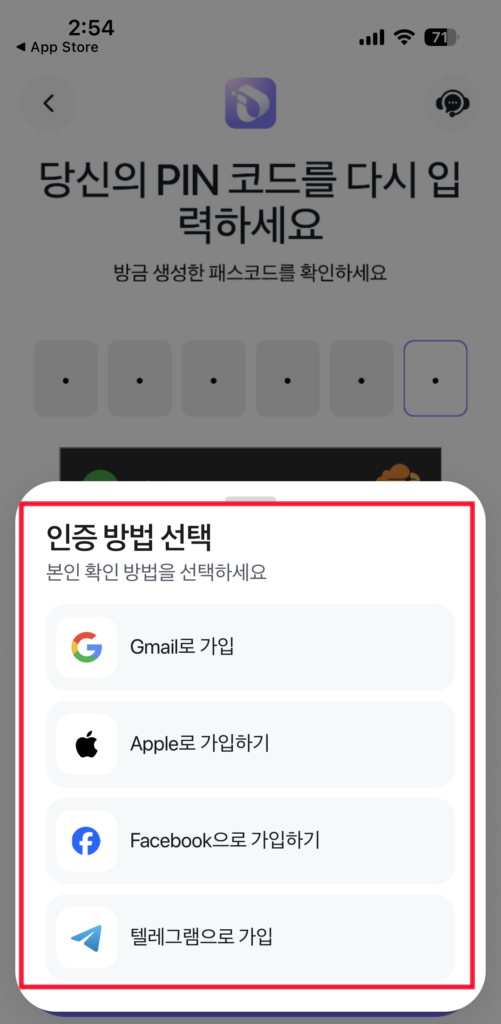다시 한번 핀코드 확인과 인간임을 확인하고요, 아래처럼 지메일 등으로 인증을해야 합니다.