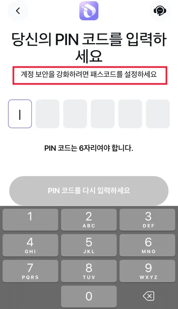 주사위 아이콘을 누르면 숫자아이디가 계속 변경됩니다. 마음에 드는 숫자 아이디 선택하면 계속 버튼이 활성화 됩니다. 계속 버튼을 누르면 이제 핀 코드를 생성할 차례입니다.