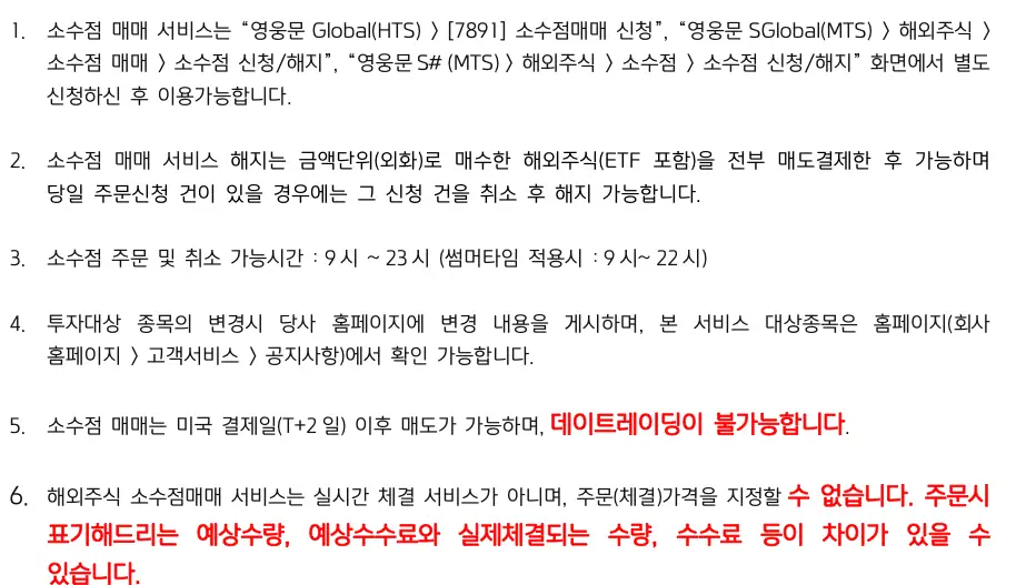6.소수점 매매는 바로 매매가 이뤄지지 않습니다. 온주,즉 1주를 모아서 매매 신청을 하게됩니다.