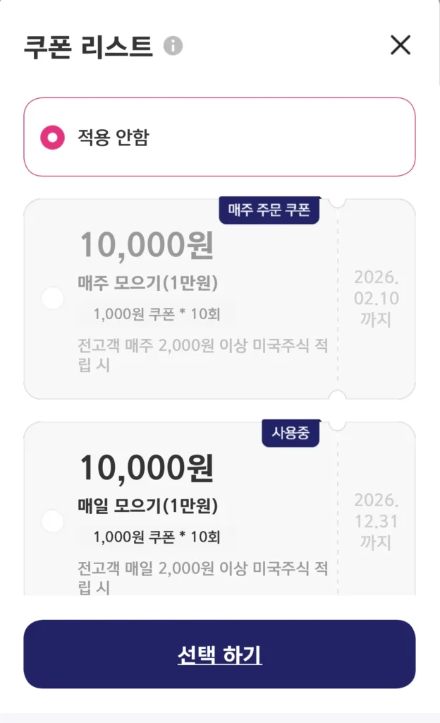단 현재 진행된 쿠폰은 해외주식 더모으기에만 사용가능합니다.
